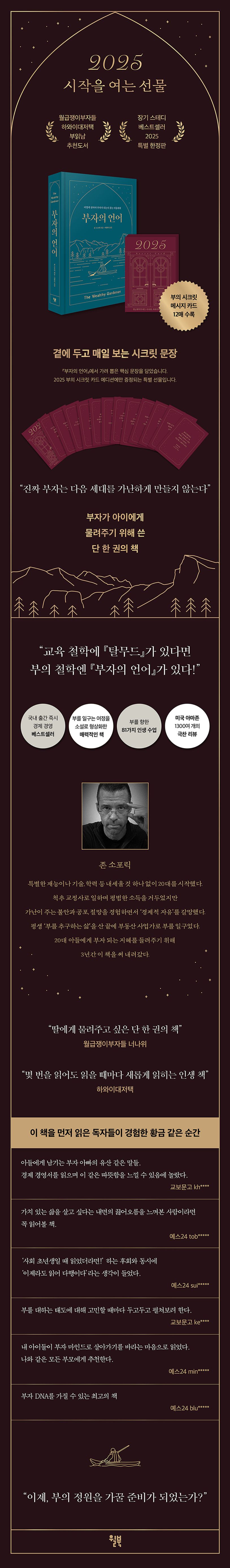 출간 즉시 경제 경영 분야 베스트셀러에 오르고, 현재까지 수많은 독자에게 ‘인생 책’으로 꼽히는 『부자의 언어』가 특별 에디션으로 출간되었다. 재테크 전문 유튜브 채널 〈월급쟁이부자들〉에서 부의 정신을 갖추기 위해 읽어야 할 필독서로 『세이노의 가르침』과 함께 이 책을 추천했다. “소름이 끼칠 만큼 부의 철학에 대해 제대로 이야기한 책”이라며 한 문장 한 문장 곱씹으며 읽기를 권한다. 독자들은 냉철하고도 따뜻한 가르침을 통해 비로소 돈 버는 방법을 알게 되었다며 극찬을 아끼지 않았다. 부의 진정한 철학을 알고 싶은 사람들이 이 책을 읽으며 마음속에 저마다의 황금 씨앗을 품게 되기를 바라며, 이번 골드씨드 에디션은 고급스러운 하드커버와 금박으로 소장 가치를 높였다.