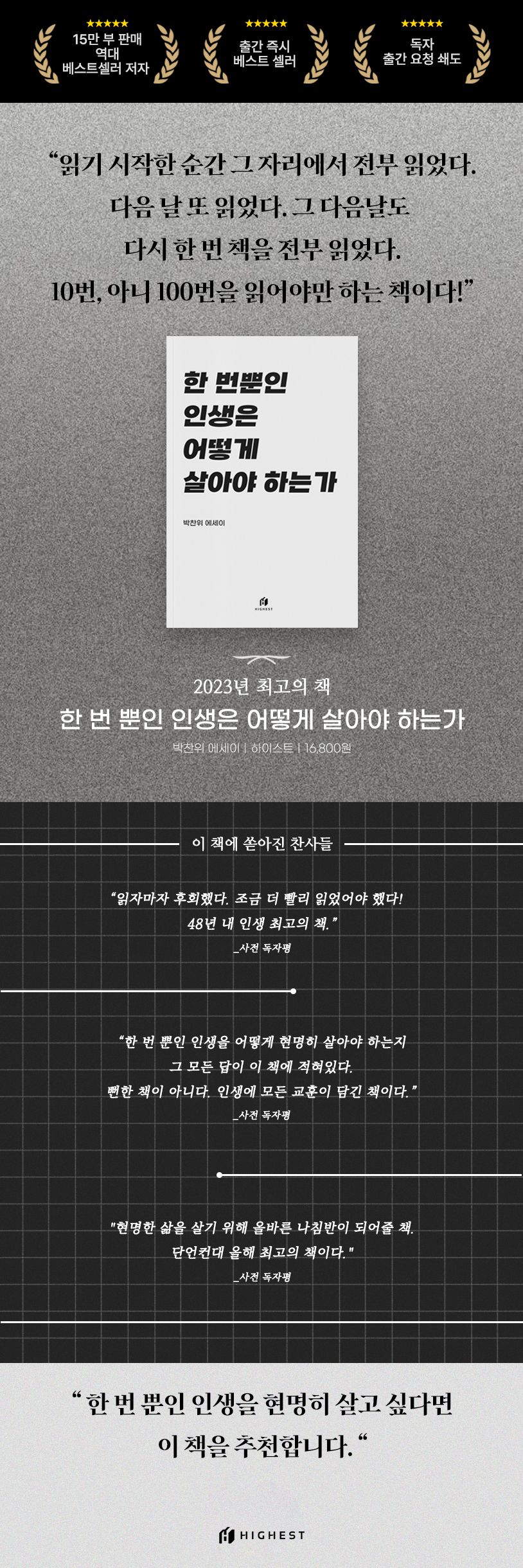 "한 번 뿐인 인생을 현명히 살고 싶다면 이 책을 추천합니다."